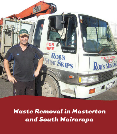 Rob's Mini Skips offers a friendly and personal service, delivering and picking up mini skips from South Wairarapa to Masterton (town & country)in the Hiab truck.